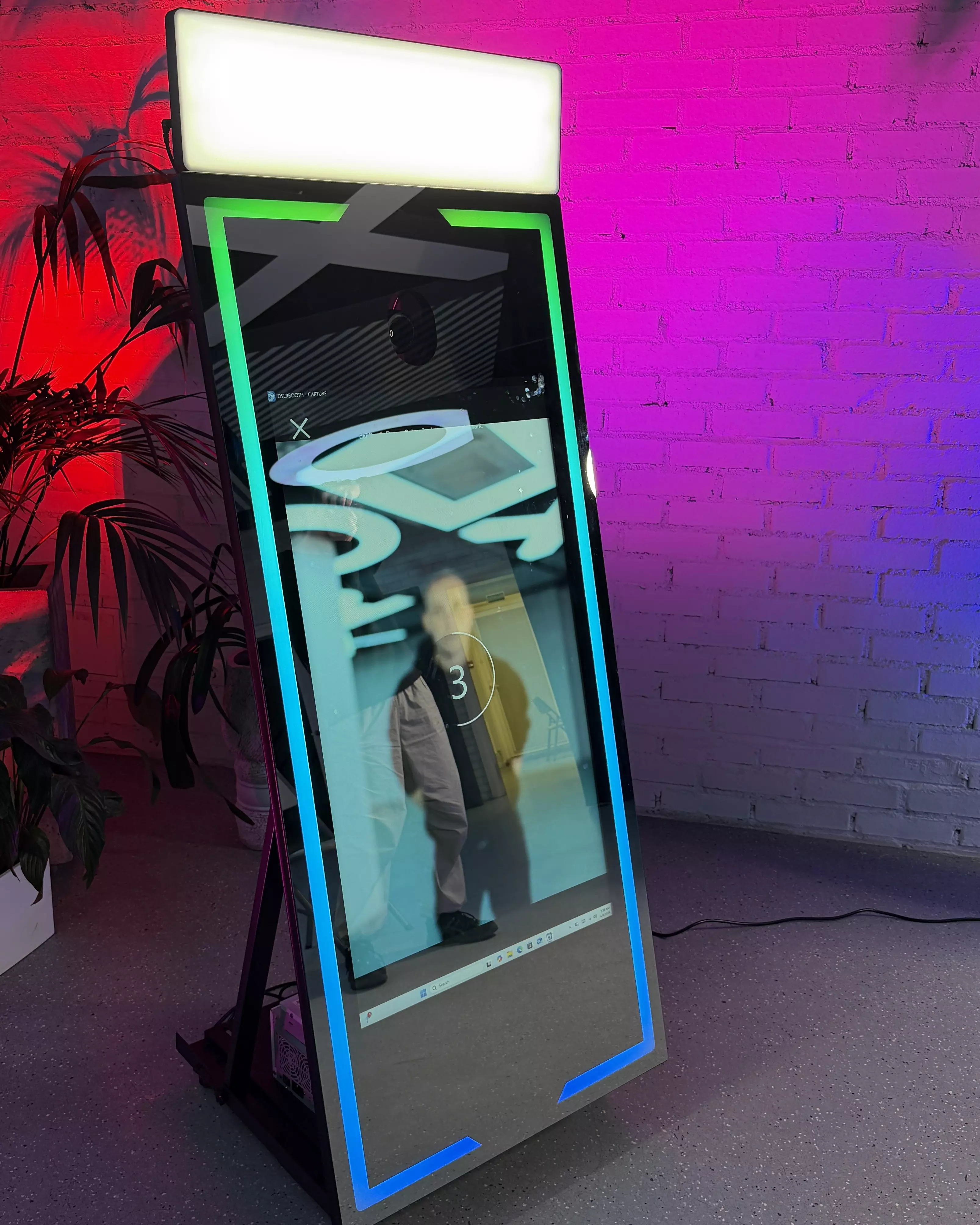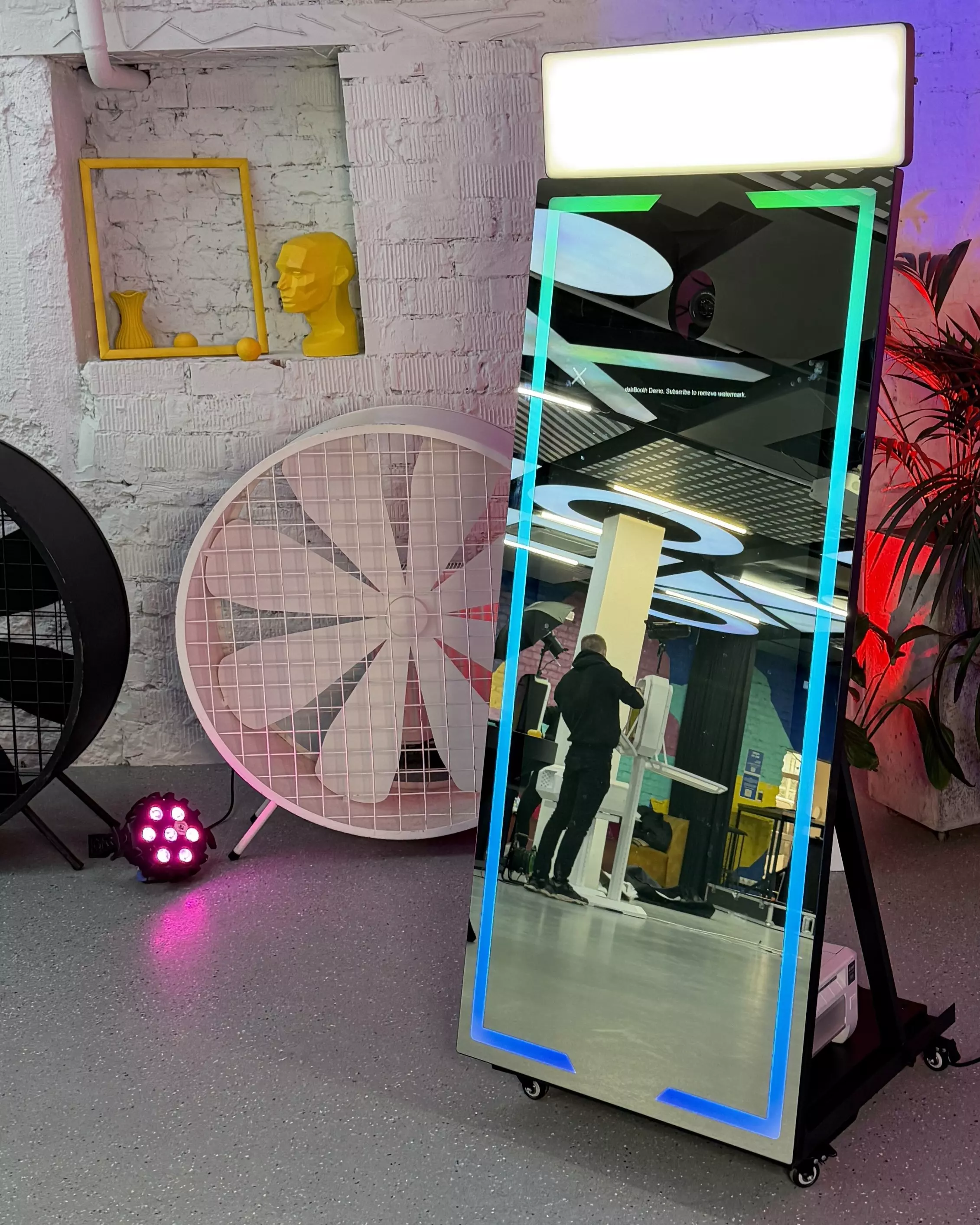 - Его заметят на любом вечеринке или мероприятии, и гости точно удивятся. Ведь селфи зеркало оборудовано переливающейся подсветкой по периметру и притягивает к себе внимание на площадке любого мероприятия.