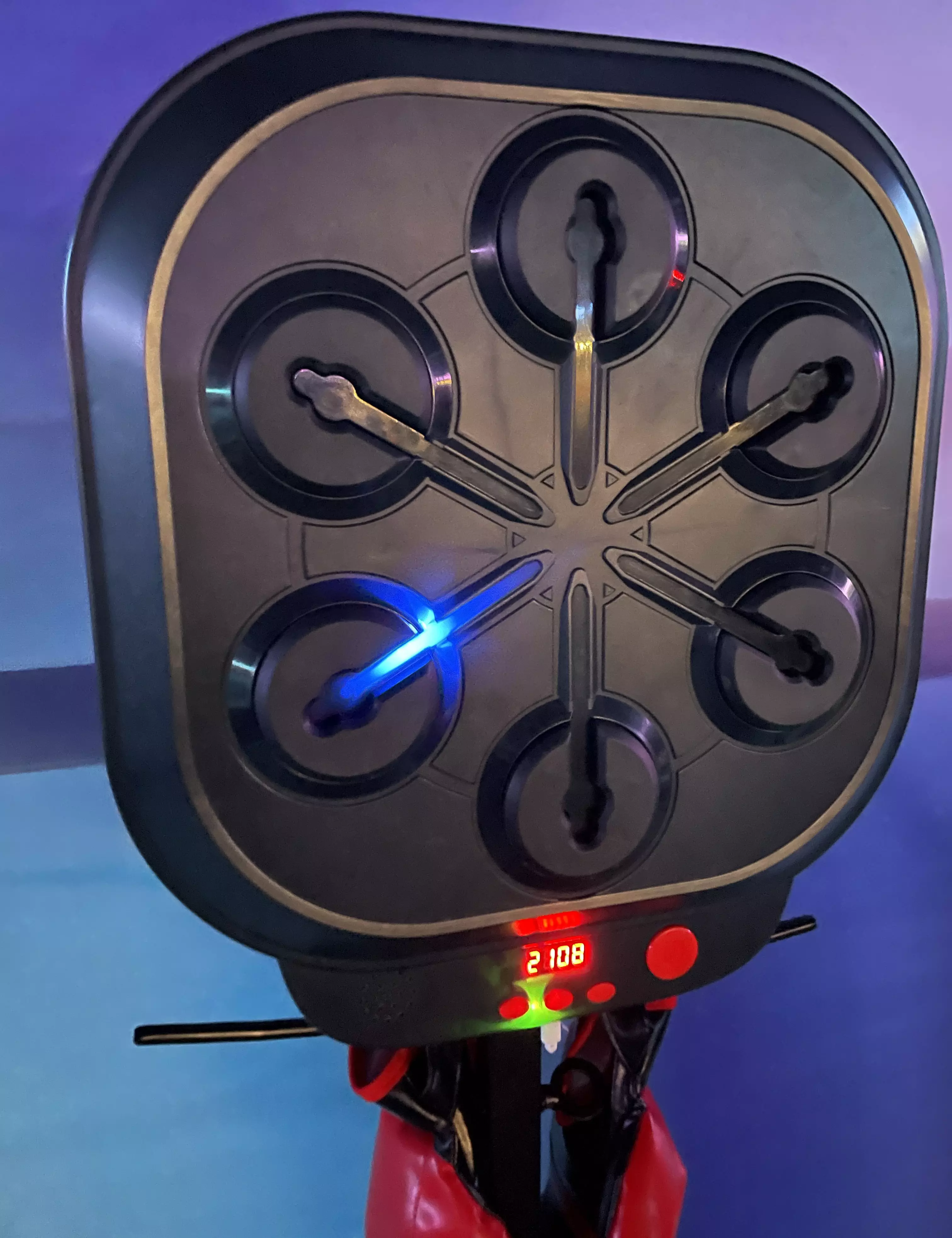 Принцип работы: музыкальная груша будет подсвечивать места, куда нужно наносить удары в такт музыки. Вам даётся время на игру и если вы успешно попадёте по цели, груша засчитывает удар и выводит результат на табло, считая ваши удачные попадания. В случае промаха удар не засчитывается.