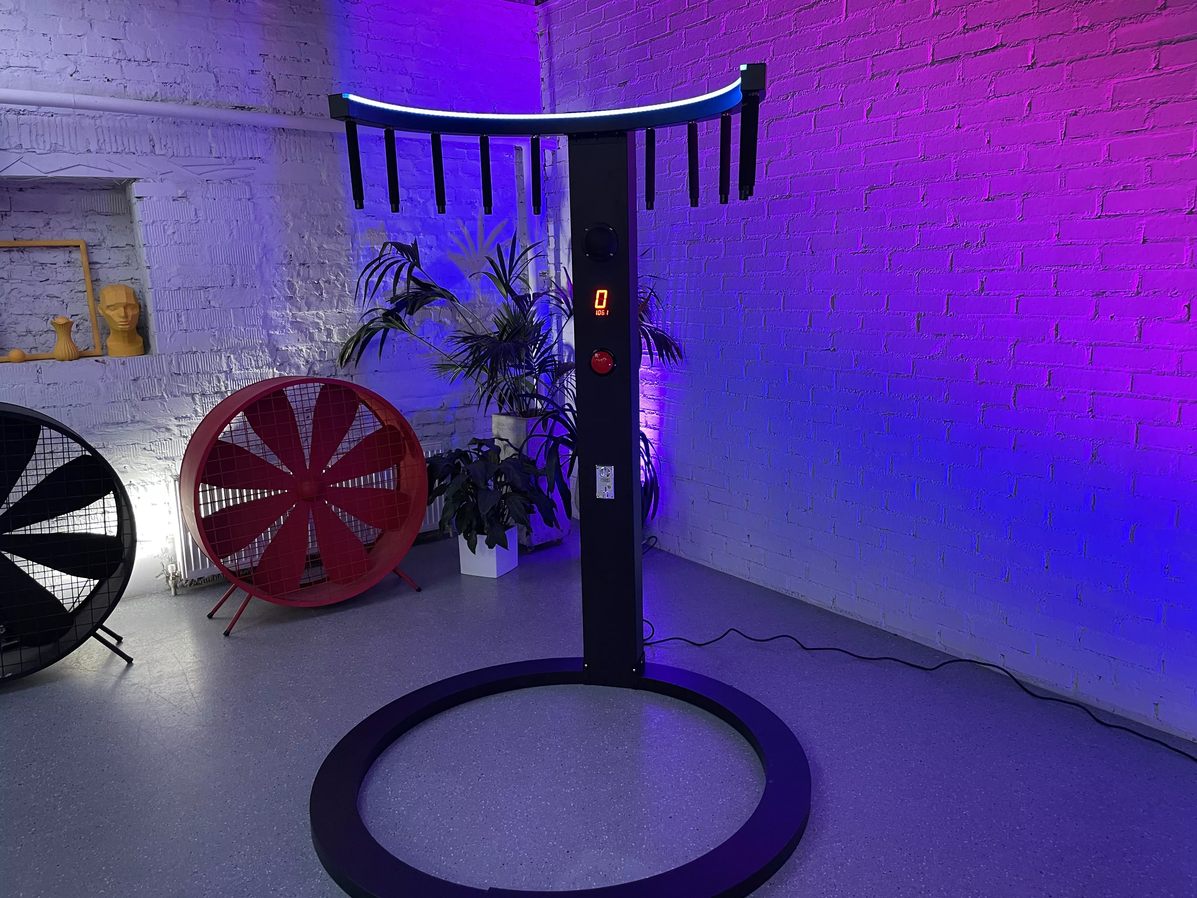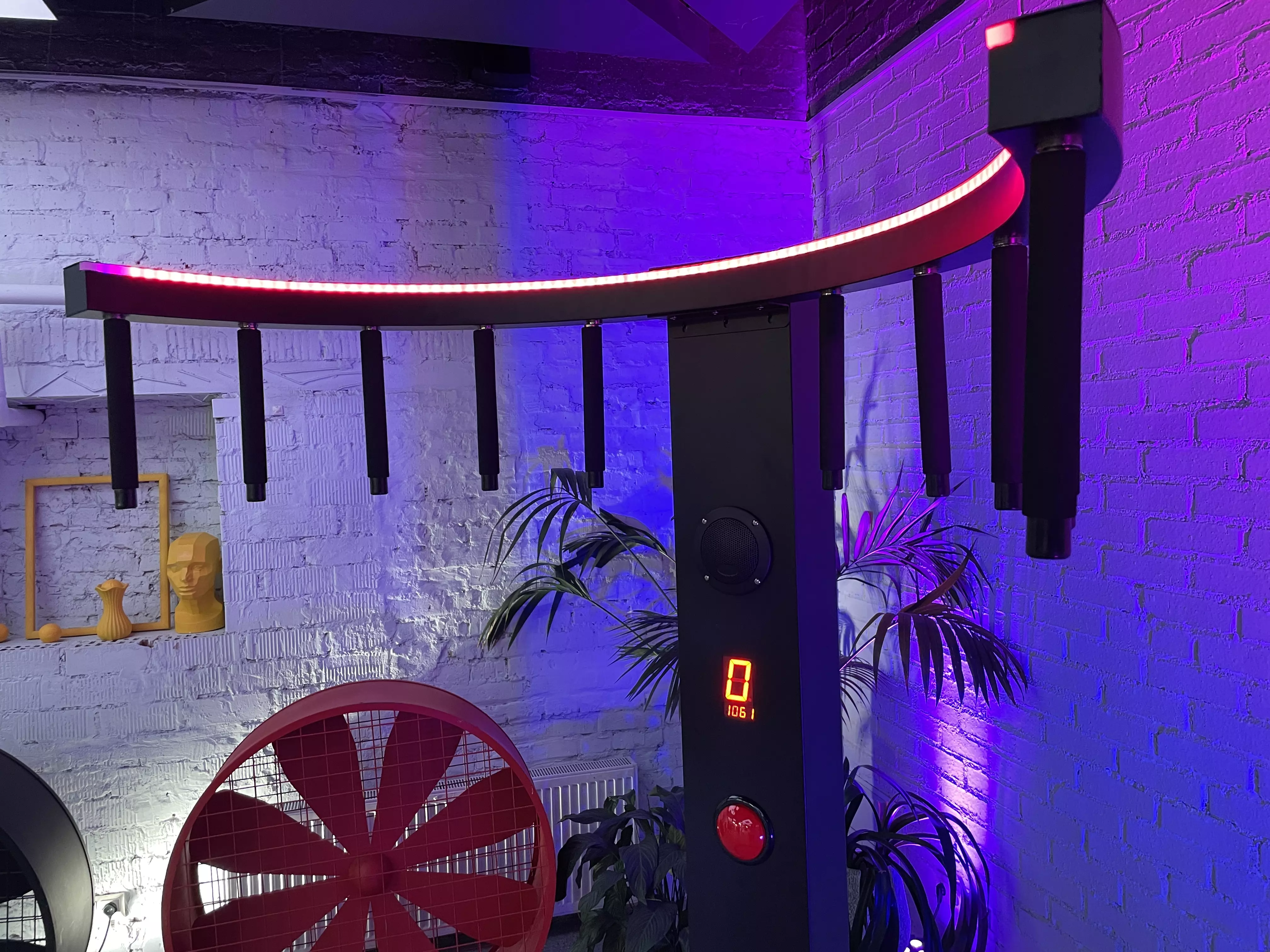 - На стойку магнититься 10 специальных палок-магнитов, которые при нажатии на кнопку старт, будут в хаотичном порядке отмагничиваются от стойки и падать.